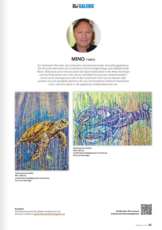 Mit seiner Kolumne im SEESICHT MAGAZIN bringt MINO Kunst, Leben und innere Wahrnehmung auf den Punkt. Seine Worte berühren, provozieren und öffnen neue Blickwinkel – ehrlich, tiefgründig und voller kreativer Kraft. MINO steht für eine Kunst, die nicht erklärt, sondern bewegt.